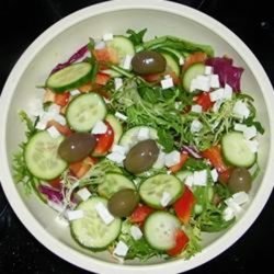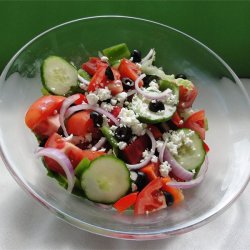 "This is an incredibly good Greek salad recipe, nice and tangy and even better in the summer when you use fresh vegetables!"