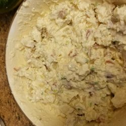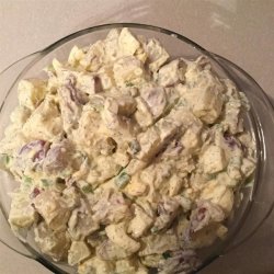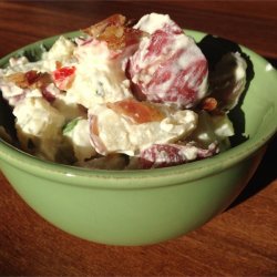 "This pretty red potato salad has great flavor. Goes well with a summer barbeque, or anytime!  For a tangy twist, try using plain fat-free yogurt in place of some or all of the sour cream. Garnish with additional sliced hard-boiled eggs, if desired."