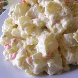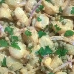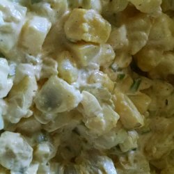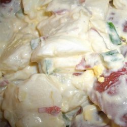 2Stir the onion, salt and pepper into the potatoes while they are still hot. This allows the potatoes to absorb the flavor. Allow to cool for about 20 minutes.