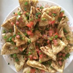 Open pita bread halves and roughly cut into approximately 2 inch pieces. Arrange on a medium baking sheet.