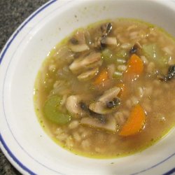 2Meanwhile, heat olive oil in a large saucepan over medium heat, stir in the onions, carrots, and celery; cook and stir until the onion has softened and turned translucent, about 10 minutes. Stir in mushrooms, and cook 5 minutes more.