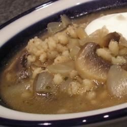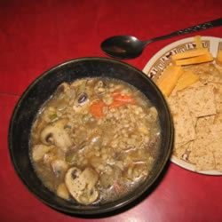 3Pour in beef broth, and bring soup to a simmer over medium-high heat, then reduce heat to medium-low, and continue simmering 15 minutes. Stir in barley, and season with salt and pepper before serving.