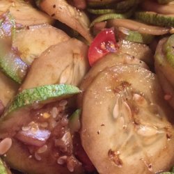 2In a salad bowl, combine the zucchini and cucumber slices. In a separate bowl, whisk together the balsamic vinegar, olive oil, lemon juice, salt and pepper. Pour over the zucchini and cucumber. Toss to coat, then garnish with lemon peel.