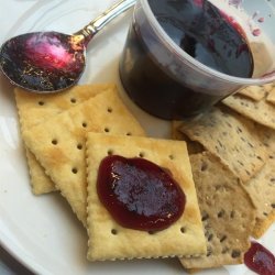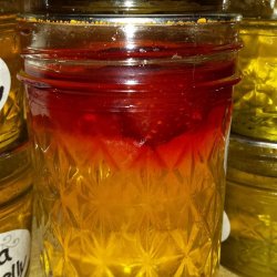 2Ladle hot jelly into hot, sterilized jars, leaving 1/2 inch headspace. Tighten 2 piece lids. Process for 5 minutes in boiling water bath.