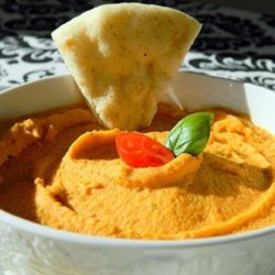 1Blend chickpeas, water, lime juice, garlic, and kosher salt in a food processor until the chickpeas are broken up, about 20 seconds. Add tahini, tomato paste, basil, and Parmesan cheese; blend again while streaming olive oil into the mixture until smooth, about 20 seconds more.