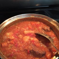 3Add diced tomatoes, beef broth, carrots, potatoes and thyme. Bring to boil; reduce heat to medium-low, cover; and simmer for 1 hour or until beef is tender.