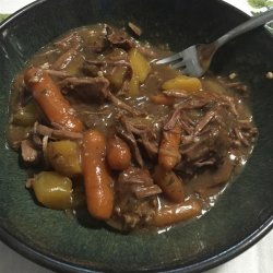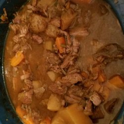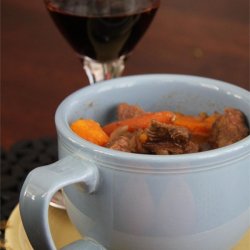 2Heat the oil in a large skillet over medium-high heat. Combine the beef and Worcestershire sauce in the skillet; cook until the beef is evenly browned on all sides; transfer to a slow cooker, but do not clean the skillet. Add the carrots, potatoes, parsley, and pepper to the slow cooker.