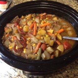 5Place the cover on the slow cooker and set to High; cook for one hour. Reduce heat to Low and cook until the beef is fork-tender, 6 to 8 hours. Whisk together the warm water and cornstarch; stir into the stew; cook uncovered until stew thickens, about 15 minutes.