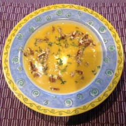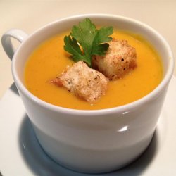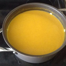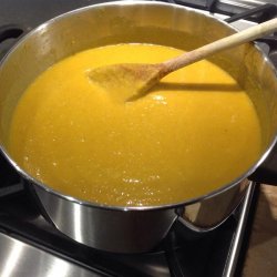 3Melt butter in a large soup pot over medium heat. Stir in the onion, garlic, ginger, curry powder, and salt. Cook and stir until the onion is soft, about 10 minutes. Pour the chicken broth into the pot, and bring to a boil. Stir in the pears and the reserved squash, and simmer until the pears are very soft, about 30 minutes.