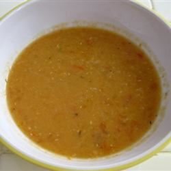 "Lentil soup with a sweet-tangy twist. This is great with a warm piece of black bread slathered with creamy butter."