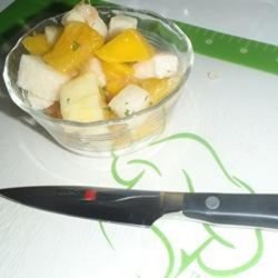 "It's a fruit salad with a refreshing twist. Along with a mix of fruits--pears, oranges, apples, and grapefruit--there are a few surprises, like jicama, mango, and a delicious cilantro and citrus dressing."