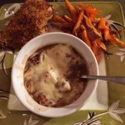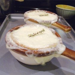 2In a medium sauce pan saute onions in butter until soft, approximately 20 minutes. Stir in flour and gradually add broth and water. Bring to a boil and simmer for 20 minutes.