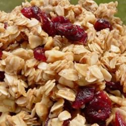 "A delicious quick and easy granola with almonds and dried cranberries that is made on the stovetop. Feel free to add your favorite dried fruits and nuts too."