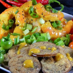 4To serve, arrange salad greens on six plates. Top each one with two slices of fried green tomato, then spoon some of the shrimp remoulade over the tomatoes and sprinkle with the remaining green onion to garnish.