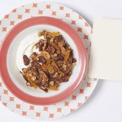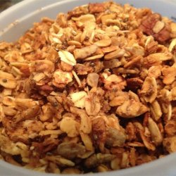 2In a large bowl, mix together the oats, wheat germ, flax seed meal, brown sugar, sunflower seeds, pecans, almonds, cinnamon and salt. In a separate bowl, whisk together the oil, honey, vanilla and water. Pour the wet ingredients over the dry, and mix until evenly blended. Spread in a greased 9x13 or 11x7 inch baking pan.