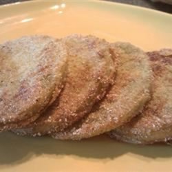 Dredge tomato slices first in egg mixture, then in cornmeal mixture. Carefully place slices in hot oil and cook until browned on both sides.