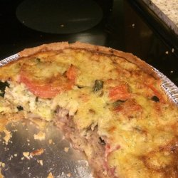 6Spread 1 cup Colby-Monterey Jack cheese in the bottom of pie crust. Layer vegetable mixture over the cheese and top with the tomatoes. Pour egg mixture into pie shell. Sprinkle remaining 1/2 cup cheese atop the quiche.