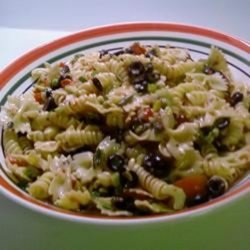 1Bring a large pot of lightly salted water to a rolling boil; cook the rotini in the boiling water until the pasta is cooked through yet firm to the bite, about 8 minutes. Drain. Rinse under cold running water until completely cooled; drain thoroughly.