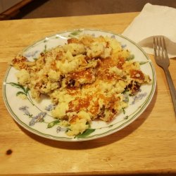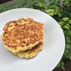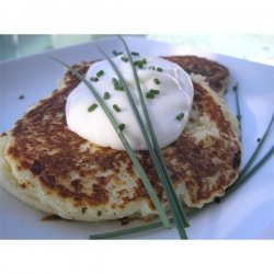 2Heat oil in a skillet over medium-high heat; fry potato mixture in skillet, pressing with a spatula to flatten evenly. Cover and cook until bottom is crispy, about 10 minutes; invert onto serving platter.