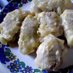 1Mix together ground pork, rice, garlic and onion. Take a leaf of cabbage and put meat in the center. Tuck in sides and roll up, secure with a toothpick.