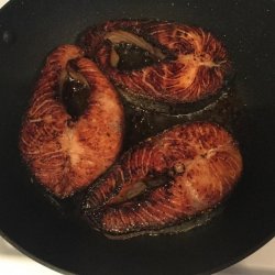 "A simple soy sauce and brown sugar marinade, with hints of lemon and garlic, are the perfect salty-sweet complement to rich salmon fillets. Even my 9 year old loves this recipe!"
