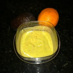 1Blend avocado, orange, water, lime juice, ginger, garlic, soy sauce, honey, red pepper flakes, and sea salt together in a blender or food processor until smooth and creamy.
