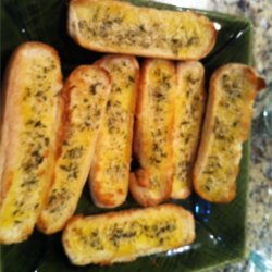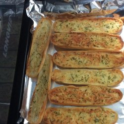 2Stir together the Parmesan cheese, garlic powder, and basil in a small bowl; set aside. Spread the cut sides of the hot dog buns with margarine. Sprinkle with the Parmesan cheese mixture and place, margarine-side-up, onto a baking sheet.