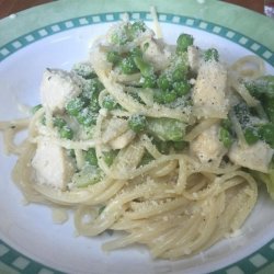 4Place pasta in a bowl, layer chicken slices in a decorative pattern over pasta, pour sauce over top of chicken and around pasta. Garnish with parsley or any herbs you desire. Serve immediately.