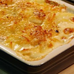 3Spread 1/3 of the potatoes into the bottom of the prepared casserole dish and top with 1/3 of the cheese mixture. Repeat layering twice, ending with cheese mixture. Pour heated half-and-half over top layer. Cover dish with aluminum foil.
