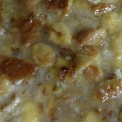 2Butter an 8x8 inch glass baking dish. Soak bread in hot milk for five minutes. Stir in 3/4 cup sugar, 1 tablespoon butter, salt, eggs, and 1 teaspoon vanilla. Pour into the baking dish.