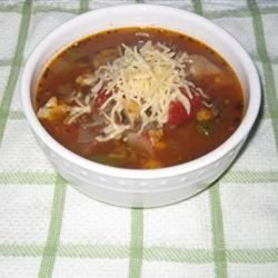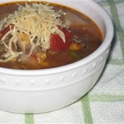 2Pour in the stewed tomatoes and season with red pepper flakes. Stir aggressively to break up the tomatoes. Pour in the beef broth and mixed vegetables and bring to a simmer. Cook until frozen vegetables are tender. Taste and adjust salt and pepper before serving.