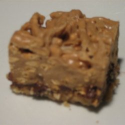 4In a heat-proof bowl over simmering water, or in the microwave, combine the marshmallows, peanut butter, brown sugar and light cream. Cook, stirring occasionally until melted and smooth. Remove from heat and stir in the chow mein noodles. Spread on top of the chocolate layer of the crust. Let cool before cutting into squares.