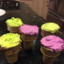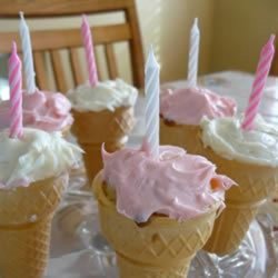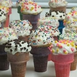 3Fill cones about 3/4 full leaving the batter 1/2 inch from top. Place filled cones on a baking tray. Bake in oven for about 15 to 20 minutes until an inserted toothpick comes out clean.