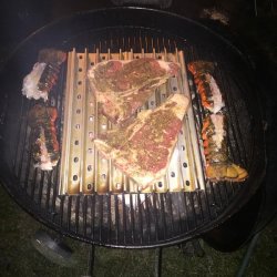 3Lightly oil grill grate. Place tails, flesh side down, on preheated grill. Cook for 10 to 12 minutes, turning once, and basting frequently with marinade. Discard any remaining marinade. Lobster is done when opaque and firm to the touch.