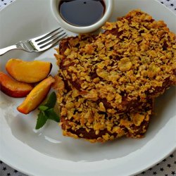 2Beat eggs, milk, sugar, vanilla extract, and cinnamon in a bowl; dip toast into egg mixture and press into crushed corn flakes until coated. Arrange coated toast in a single layer in a baking dish.