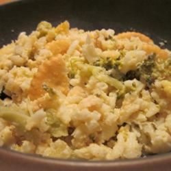 3Stir the broccoli, onion, Cheddar cheese, rice, condensed cream of mushroom soup, and water in 2 quart casserole dish. Sprinkle with the cracker crumbs.