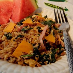 The base for this meal is really the rice, egg, onion, and spinach. Feel free to add and subtract as you please.