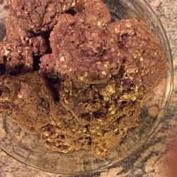 2Beat butter or margarine and sugars until creamy. Add eggs and vanilla; beat well. Add combined flour, cocoa powder, baking soda and salt; mix well. Stir in oats and raisins, mix well.
