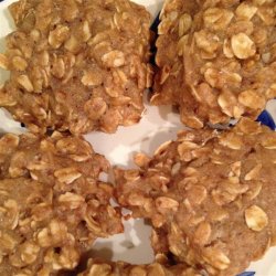 2In a medium bowl, stir together the brown sugar, white sugar, and applesauce. Sift together the flour, baking powder, salt, and cinnamon; stir into the applesauce mixture. Add the rolled oats, raisins and chopped nuts (if desired); stir until combined.
