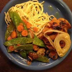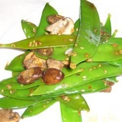 2Heat oil in the skillet over medium high heat. Stir in snow peas and mushrooms, and cook 3 to 4 minutes, until tender.