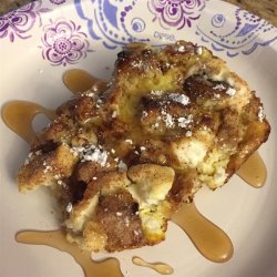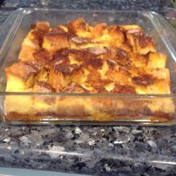 2Line bottom of pan with bread cubes. In a large bowl, beat together eggs, milk, 2 tablespoons sugar, salt and vanilla. pour egg mixture over bread. Dot with margarine; let stand for 10 minutes.