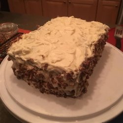 4Bake for 45 to 50 minutes in the preheated oven, until cake tests done with a toothpick. Cool for 10 minutes before removing from pan. When completely cooled, frost with cream cheese frosting.