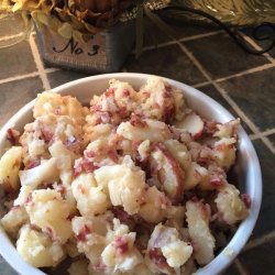 4In a small bowl, whisk together the flour, sugar, salt, celery seed, and pepper. Add to the sauteed onions and cook and stir until bubbly, then remove from heat. Stir in water and vinegar, then return to the stove and bring to a boil, stirring constantly. Boil and stir for one minute. Carefully stir bacon and sliced potatoes into the vinegar/water mixture, stirring gently until potatoes are heated through.