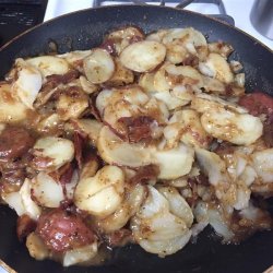 2Place bacon in a large, deep skillet. Cook over medium high heat until evenly brown. Drain, crumble and set aside, reserving drippings.