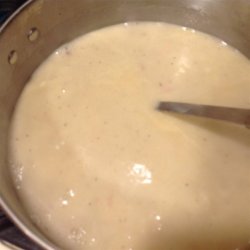 2Warm the milk in the microwave, and whisk in the flour with a fork until there are no lumps. Return the gravy to a boil, and gradually stir in the milk mixture. Continue to cook, stirring constantly, for 1 minute, or until thickened. Be careful not to let the bottom scorch.